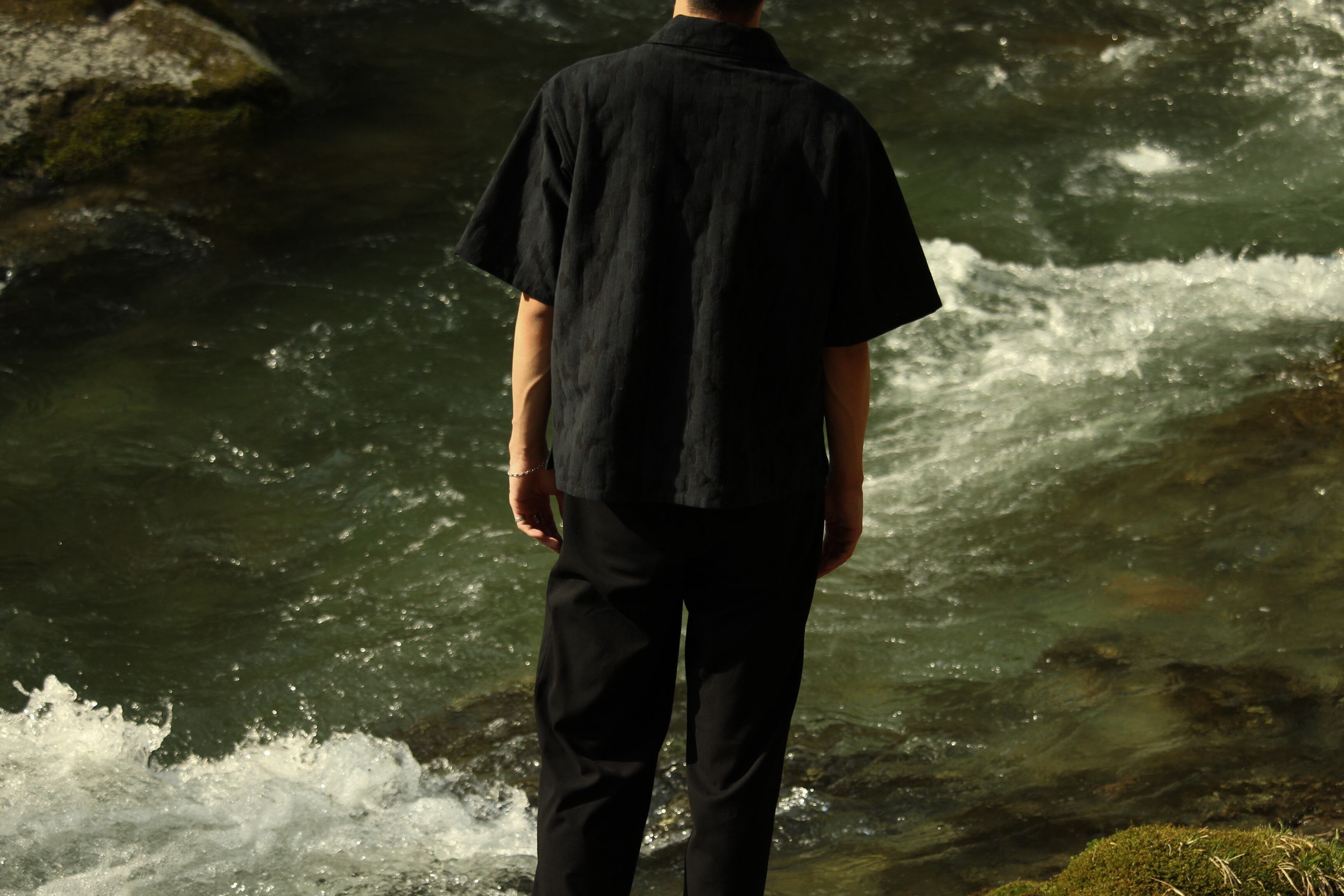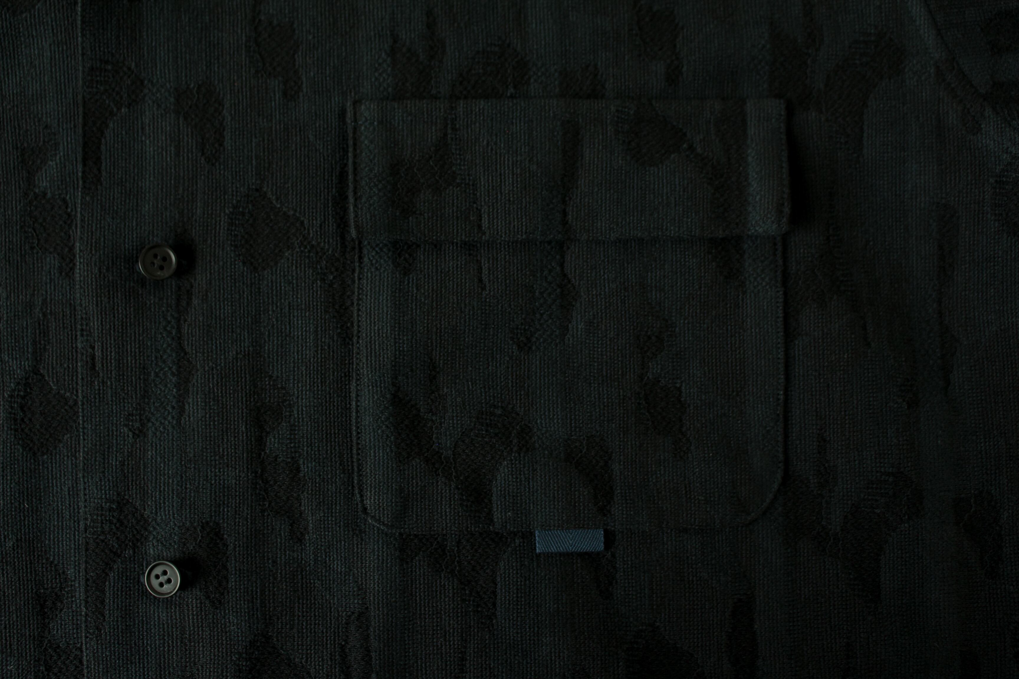 さりげないカモフラージュ柄が特徴の開襟シャツ